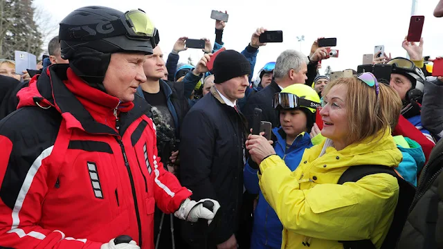 The purpose of invitation the Belarus's leader was to discuss the main issues on the bilateral agenda and also prospects for the development of the Eurasian integration processes. Later that day, the President and his Belarusian counterpart took a break from negotiations and went skiing at an alpine ski resort. On 15 February, Russia and Belarus will meet with their ministers of education, culture and sport to discuss practical proposals for the further development of the cultural and humanitarian cooperation between the two countries. In the picture, a woman takes a picture of Russian President Vladimir Putin during the skiing.Russian President Vladimir Putin: Said ''we are delighted to see you, this time in Sochi. As agreed, we will have an informal conversation. We will have the opportunity to get together and talk today, tomorrow and the day after tomorrow. I hope you will get the chance to relax a little, at least for a few hours. We have an extensive program for today and the next two days. To begin with, I would like to reiterate with satisfaction that our relations are getting stronger. Russia remains Belarus’ largest trade and economic partner and accounts for over 49 percent of the republic's trade. Our financial relations are going from strength to strength as well. A fairly large amount of state loans – over 6 billion plus 58 billion rubles and six EAEU Fund transactions totaling $1.6 billion – was granted to Belarus over recent years.President Vladimir Putin with goggles at the Gazprom Mountain Resort (Laura) in Sochi, Russia This is the third meeting between the two presidents from December 25 onwards to settle the controversy over duties on oil and gas. The main problem in Russian-Belarusian relations is the well-known Russian "fiscal maneuver", under which Moscow will eliminate by 2024 the discount to tariffs on oil exports to Belarus, which is currently 30%.